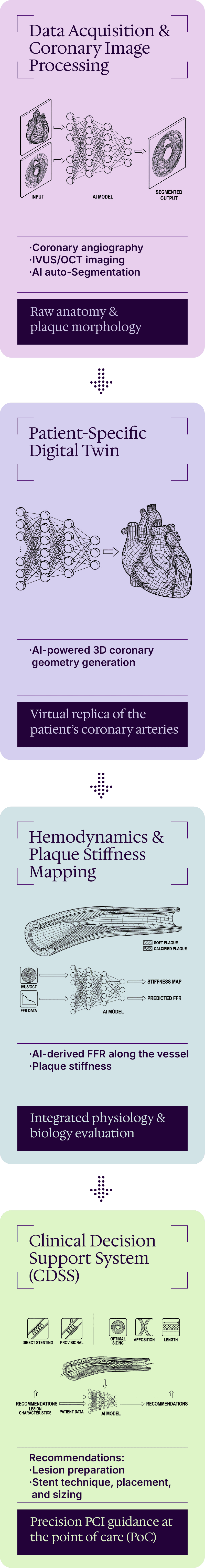 ComKardia is building an AI-powered decision-support platform for stent-based procedures. Using a patient-specific digital twin and scenario-based analysis, we help cardiologists plan treatment approaches with greater precision, efficiency, and consistency. The platform is designed to reduce variability and support scalable deployment across catheterization labs.